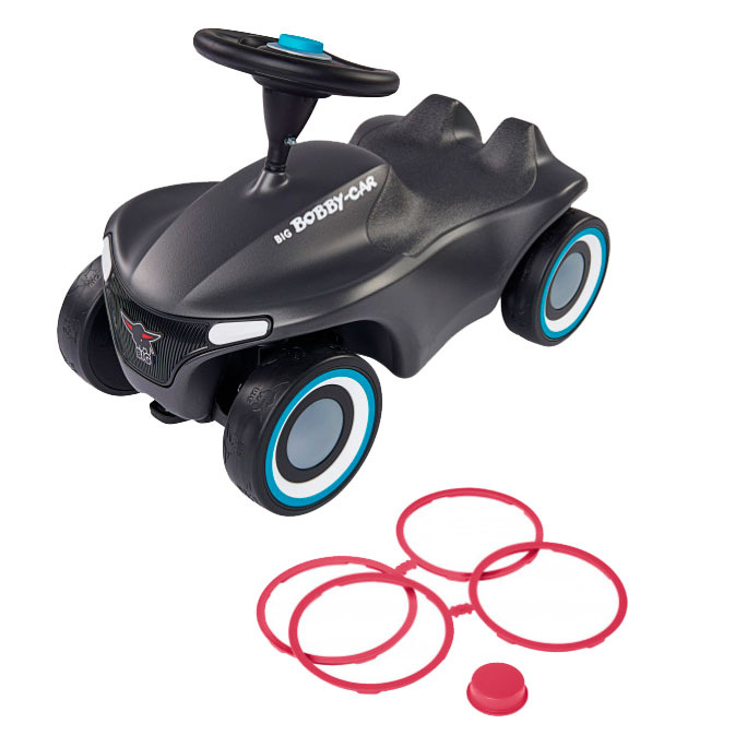 - BIG-Bobby-Car Neo в стандартной комплектации поставляется с очень широкими, высококачественными и устойчивыми к истиранию мягкими пластиковыми шинами, которые обеспечивают хорошее сцепление с дорогой и бесшумное катание.
