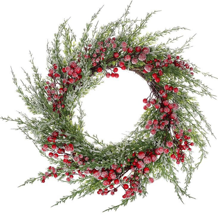 Опис Вінок новорічний декоративний Ягоди у льоду діаметр штучна хвоя Bona DP73718