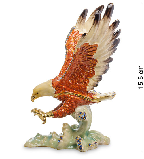 Фігурка дуже красива, орел зображений у всіх подробицях, до кожної пір'їнки, а піна на хвилях виблискує блакитними кристаликами. Але це – не просто яскравий сувенір: усередині пташиного тіла можна сховати прикраси , коштовності та інші цінні речі.