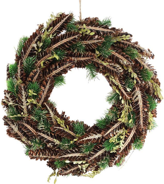 Вінок новорічний декоративний Зелені гілки з натуральними шишками Bona DP42834