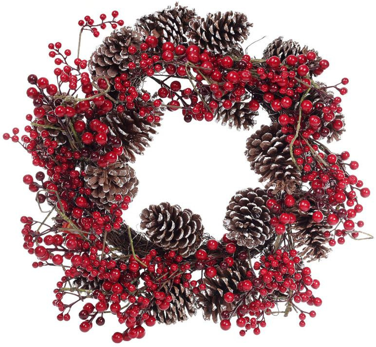 Опис Вінок новорічний декоративний із червоних ягід із шишками Bona DP42749