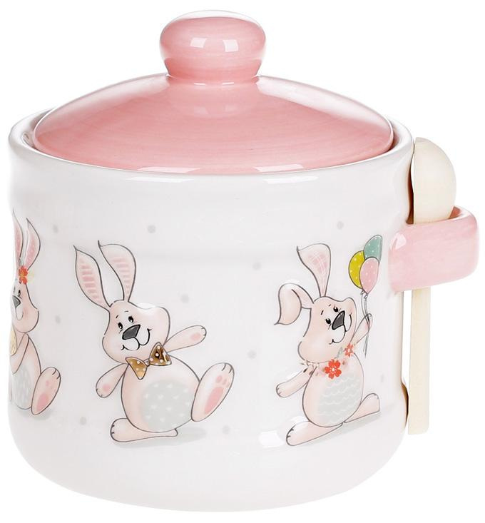 Банка Bona керамическая Веселый кролик с деревянной ложкой DP37876