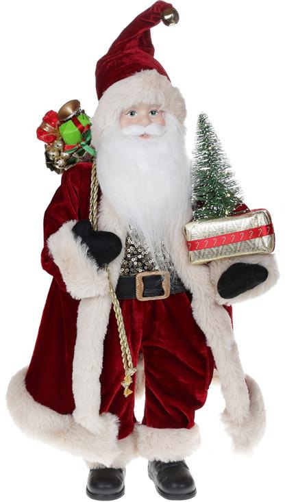 Фігура Санта з ялинкою (м'яка іграшка), з LED підсвічуванням, бордо. Матеріал - тканина, пластик.
