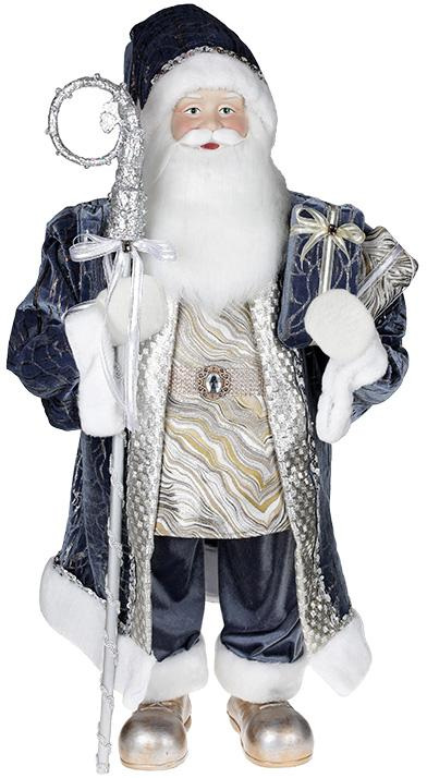 Фігура Санта з палицею (м'яка іграшка), сіро-блакитний. Матеріал - тканина, пластик.