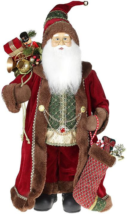 Фігура Санта з носком (м'яка іграшка), бордо з коричневим. Матеріал - тканина, пластик.