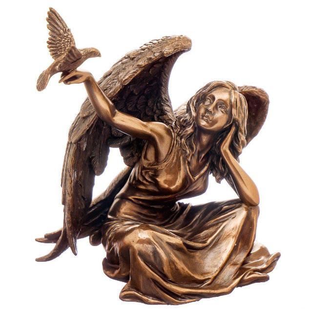 Статуетка "Янгол з голубом". Матеріал: полістоун покритий бронзою.