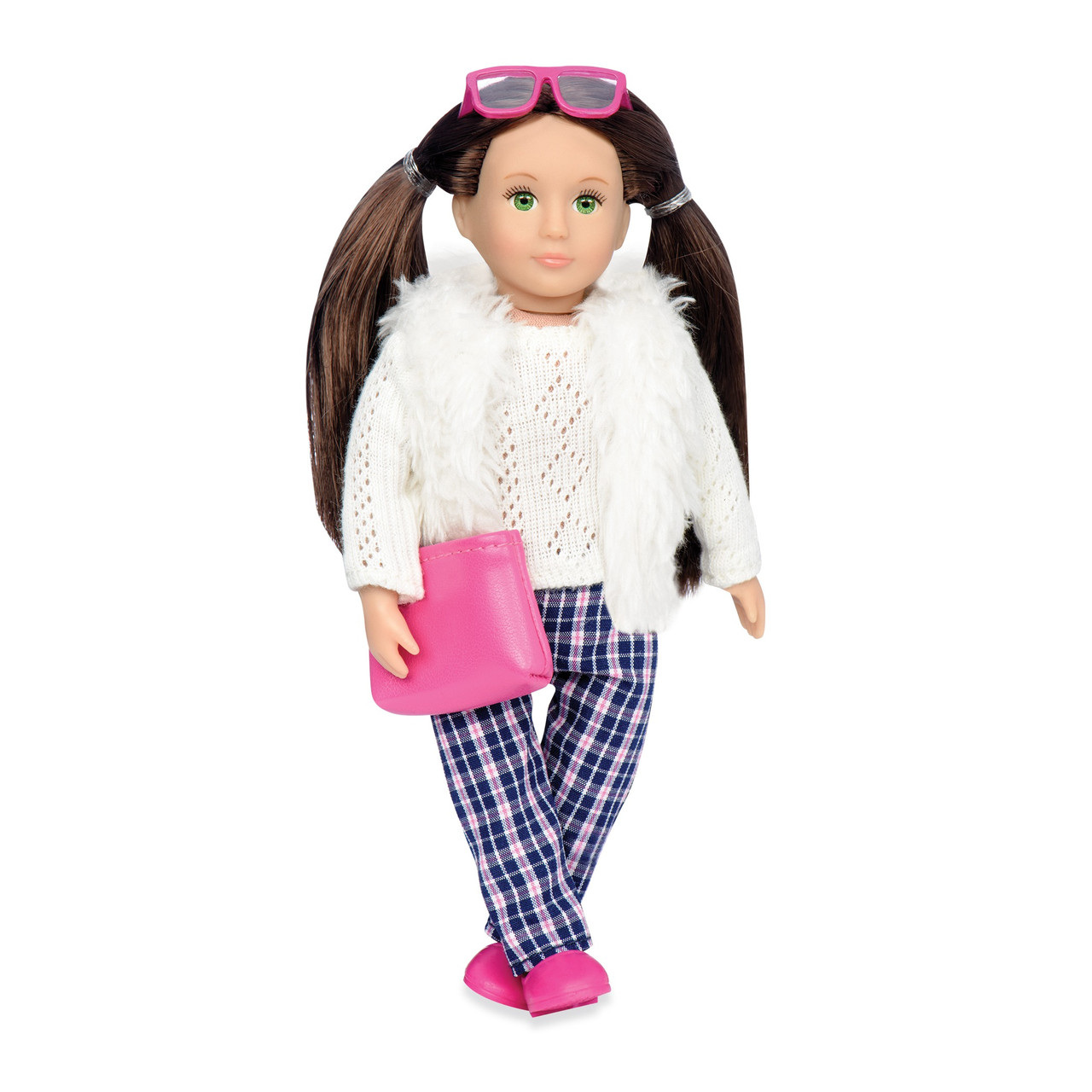 Лялька LORI Уітні стане чудовим доповненням до вашої колекції Lori Friend! Лялька одягнена у білу хутряну жилетку та картаті штани, а модні аксесуари завершують її стильний образ. Її великі зелені очі та розкішне чорне волосся можна укладати у різноманітні зачіски.