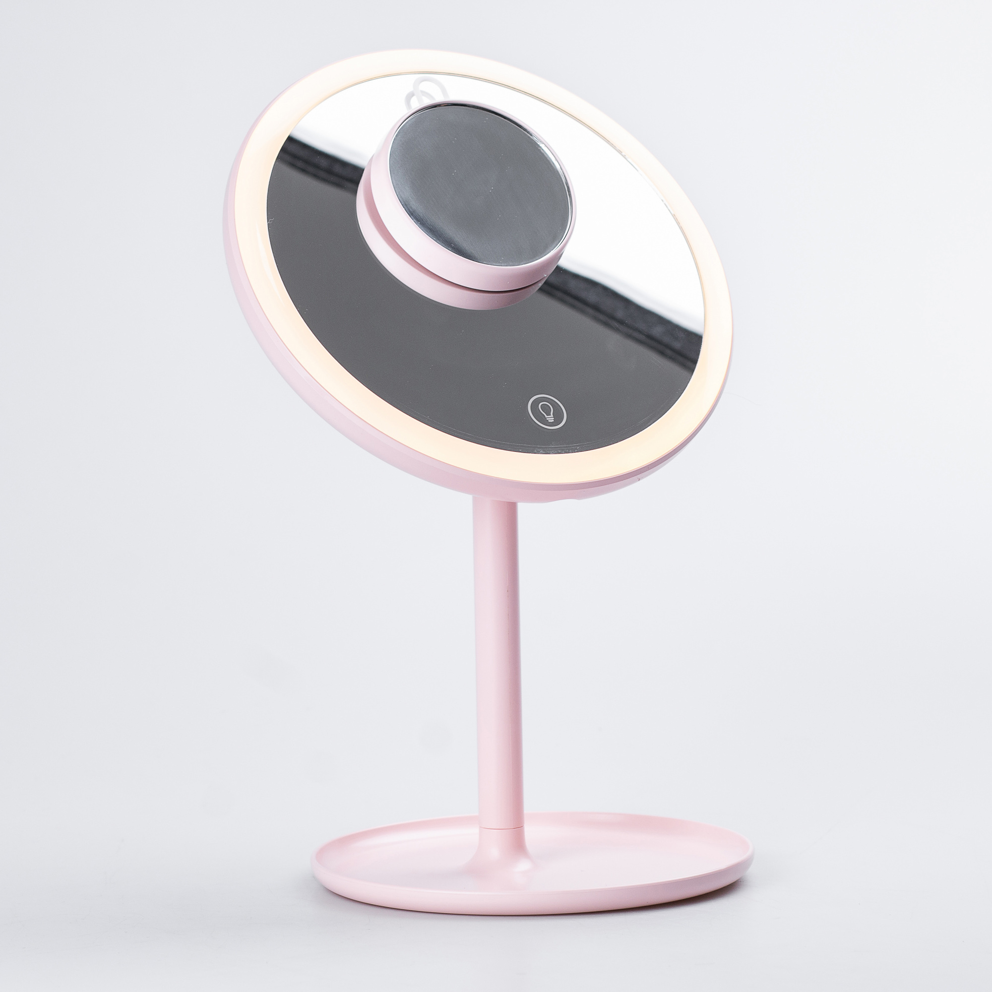 Опис Дзеркало настільне Lugi кругле з збільшенням і led підсвіткою для макіяжу Рожевий (HP072TD020P)