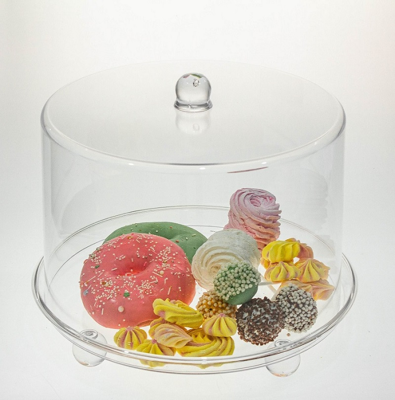 Материал: акрил Высота общая: 28 см Высота крышки: 21 см Диаметр крышки: 31 см Диаметр подставки: 34 см Глубина подставки: 2 см Вес: 1,35 кг Цвет: прозрачный Подходит для мытья в посудомоечной машине