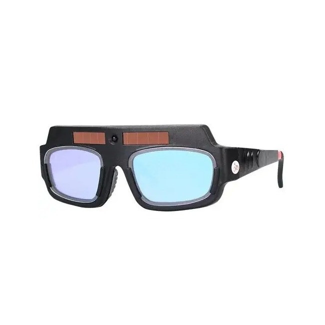 Зручні зварювальні окуляри Хамелеон YZ06 з світлофільтром, що автоматично затемнюється. Призначені для захисту очей від яскравого яскравого світла, ультрафіолетового та інфрачервоного випромінювань і механічного впливу. На лицьовій стороні окулярів розміщена сонячна панель для заряджання вбудованого акумулятора. Дужки окулярів з регульованою довжиною.