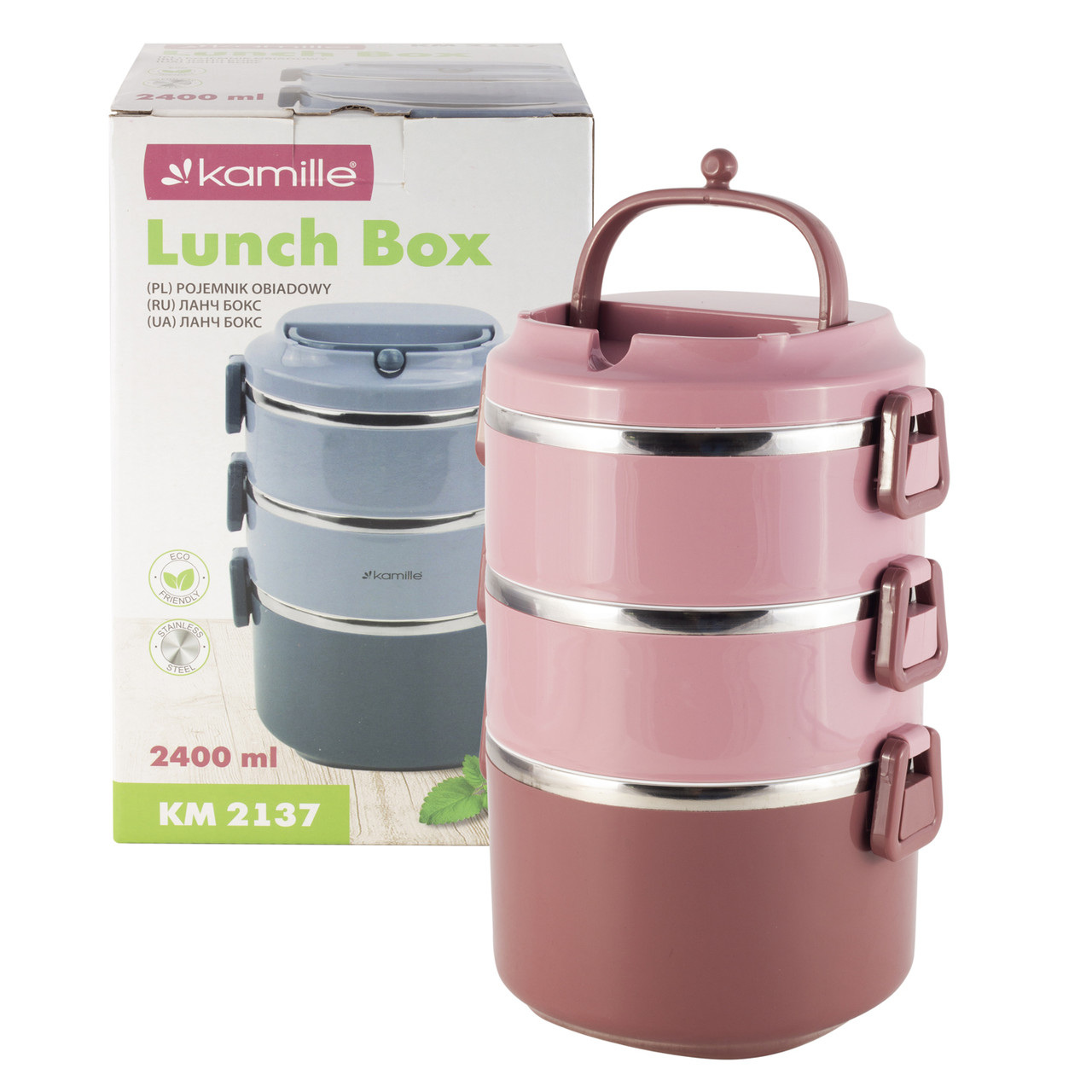 Эргономичный и компактный контейнер тройной из нержавеющей стали и пластика pink 2.7л KL225923 Kamille