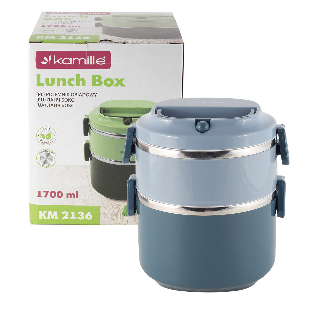 Опис Эргономичный и компактный контейнер двойной blue 1700мл KL226260 Kamille