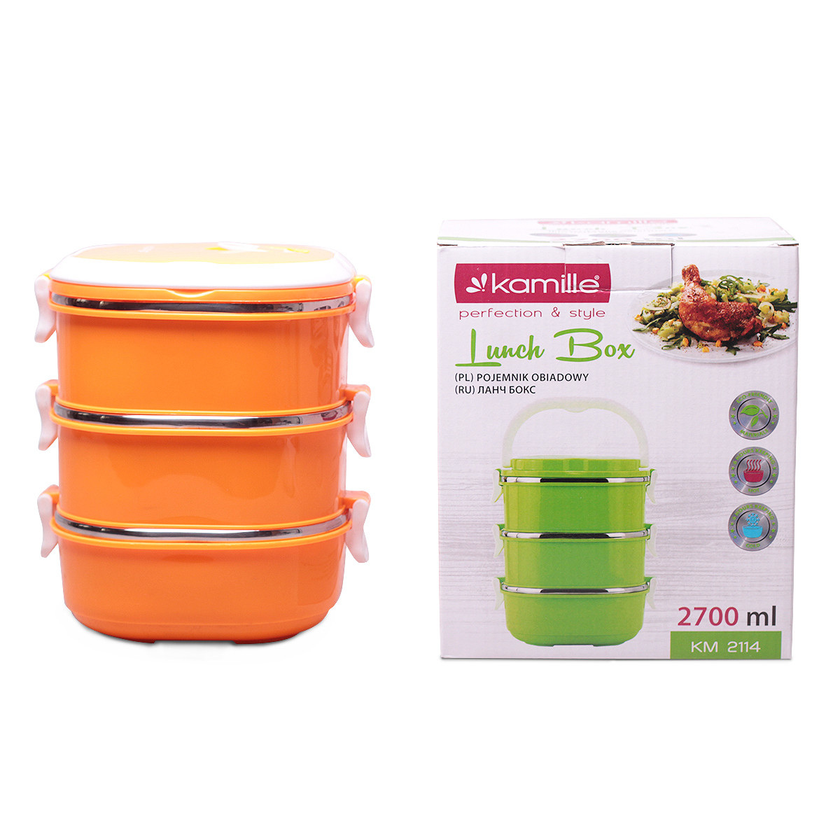 Опис Эргономичный и компактный контейнер тройной из нержавеющей стали и пластика orange 2.7л KL225924 Kamille