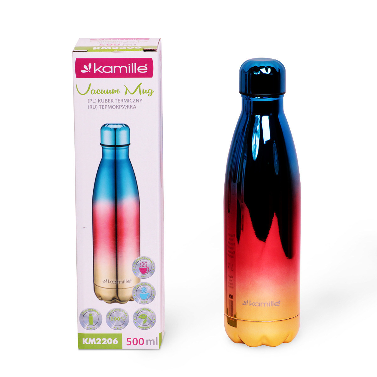 Банка термальная с трубочкой из нержавеющей стали Kamille 500 мл Разноцветный (KL225495)