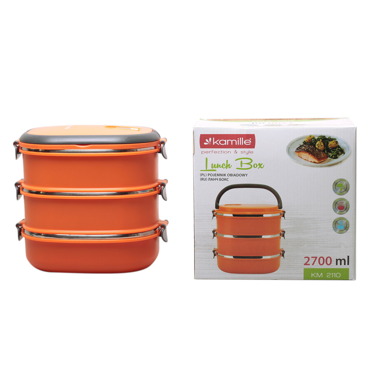 Контейнер для еды с тремя отсеками из пластика и нержавеющей стали 2700мл KL225452 Kamille green
