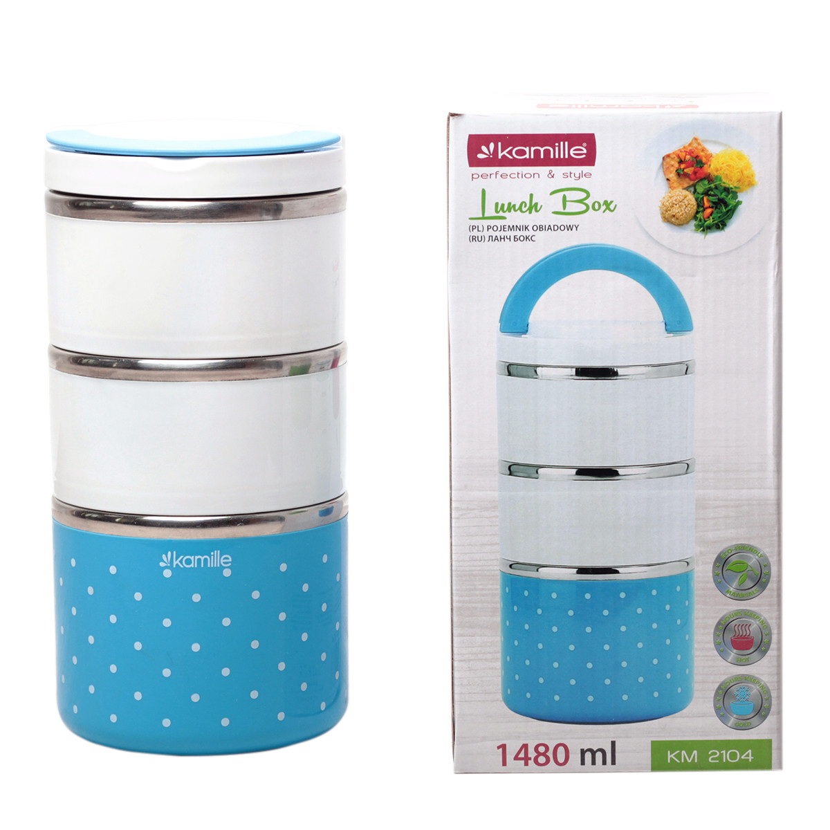 Контейнер для еды с тремя отсеками из пластика и нержавеющей стали 2700мл KL225452 Kamille green