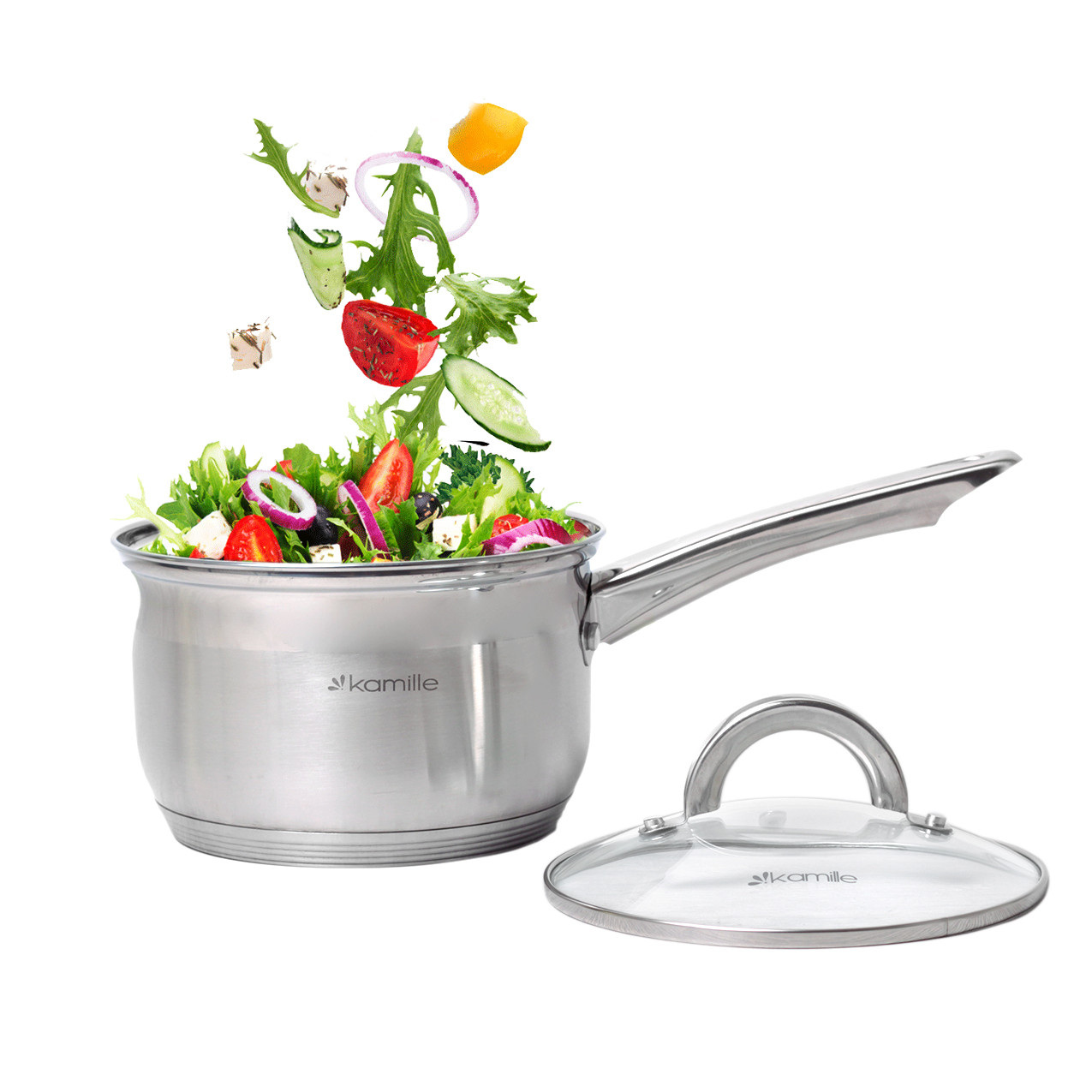 Ковш 2.1л из нержавеющей стали с крышкой с сатиновым напылением и полыми ручками KL226074 Kamille