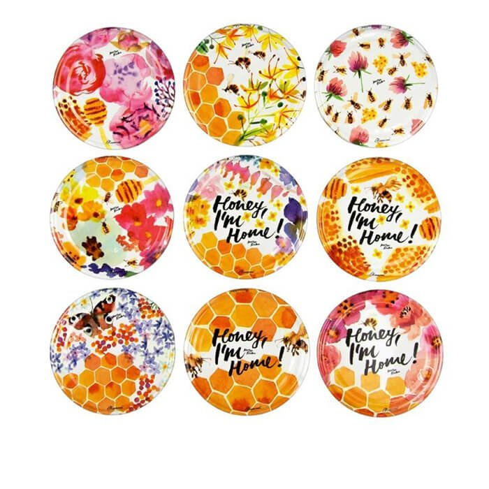 Кришки Твіст 82 з принтом "Мед". При виготовленні кришки використовується якісна харчова жесть, відповідно до вимог ГОСТу для виробництва кришок даного типу.