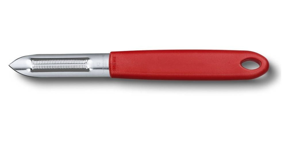 Victorinox — швейцарская компания, известная в первую очередь как производитель ножей. Штаб-квартира расположена в населённом пункте Ибах, в Швейцарии. Сегодня Victorinox — один из ведущих изготовителей ножей в мире. Компания известна не только своими знаменитыми складными моделями, кухонные ножи также завоевали большую популярность во всем мире. Victorinox изготавливает безупречные кухонные и хозяйственные ножи из углеродистой стали с применением особого процесса отпуска металла. Этот процесс позволяет создать режущую кромку, которая при многократном повторном затачивании сохраняет первоначальную остроту. Овощечистка Victorinox с микросеррейторным лезвием предназначена для чистки картофеля, томатов и других овощей и фруктов. Надежно закрепленное лезвие делает очистку более эффективной и экономичной. Особенно подходит для фруктов и овощей с твердой кожурой, такие как помидоры или киви. Традиционная форма овощечистки не требует никаких дополнительных навыков. Использовать ее легко и просто. Двусторонний вариант позволяет работать как к себе, так и от себя. Остро заточенный кончик поможет справится с труднодоступными местами. Микросеррейтор на лезвии делает ее более агрессивной, способной справится с любой работой. Преимущество серрейтора — долго держит заточку. Отверстие на рукояти позволяет подвешивать овощечистку в удобных местах, делает ее более доступной. Можно мыть во посудомоечной машине.