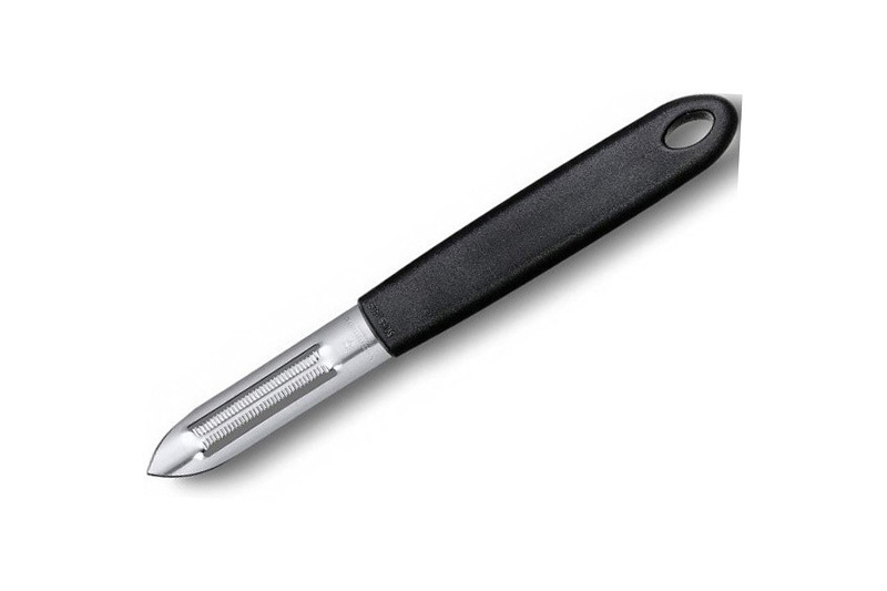 Victorinox — швейцарская компания, известная в первую очередь как производитель ножей. Штаб-квартира расположена в населённом пункте Ибах, в Швейцарии. Сегодня Victorinox — один из ведущих изготовителей ножей в мире. Компания известна не только своими знаменитыми складными моделями, кухонные ножи также завоевали большую популярность во всем мире. Victorinox изготавливает безупречные кухонные и хозяйственные ножи из углеродистой стали с применением особого процесса отпуска металла. Этот процесс позволяет создать режущую кромку, которая при многократном повторном затачивании сохраняет первоначальную остроту. Овощечистка Victorinox с микросеррейторным лезвием предназначена для чистки картофеля, томатов и других овощей и фруктов. Надежно закрепленное лезвие делает очистку более эффективной и экономичной. Особенно подходит для фруктов и овощей с твердой кожурой, такие как помидоры или киви. Традиционная форма овощечистки не требует никаких дополнительных навыков. Использовать ее легко и просто. Двусторонний вариант позволяет работать как к себе, так и от себя. Остро заточенный кончик поможет справится с труднодоступными местами. Микросеррейтор на лезвии делает ее более агрессивной, способной справится с любой работой. Преимущество серрейтора — долго держит заточку. Отверстие на рукояти позволяет подвешивать овощечистку в удобных местах, делает ее более доступной. Можно мыть во посудомоечной машине.