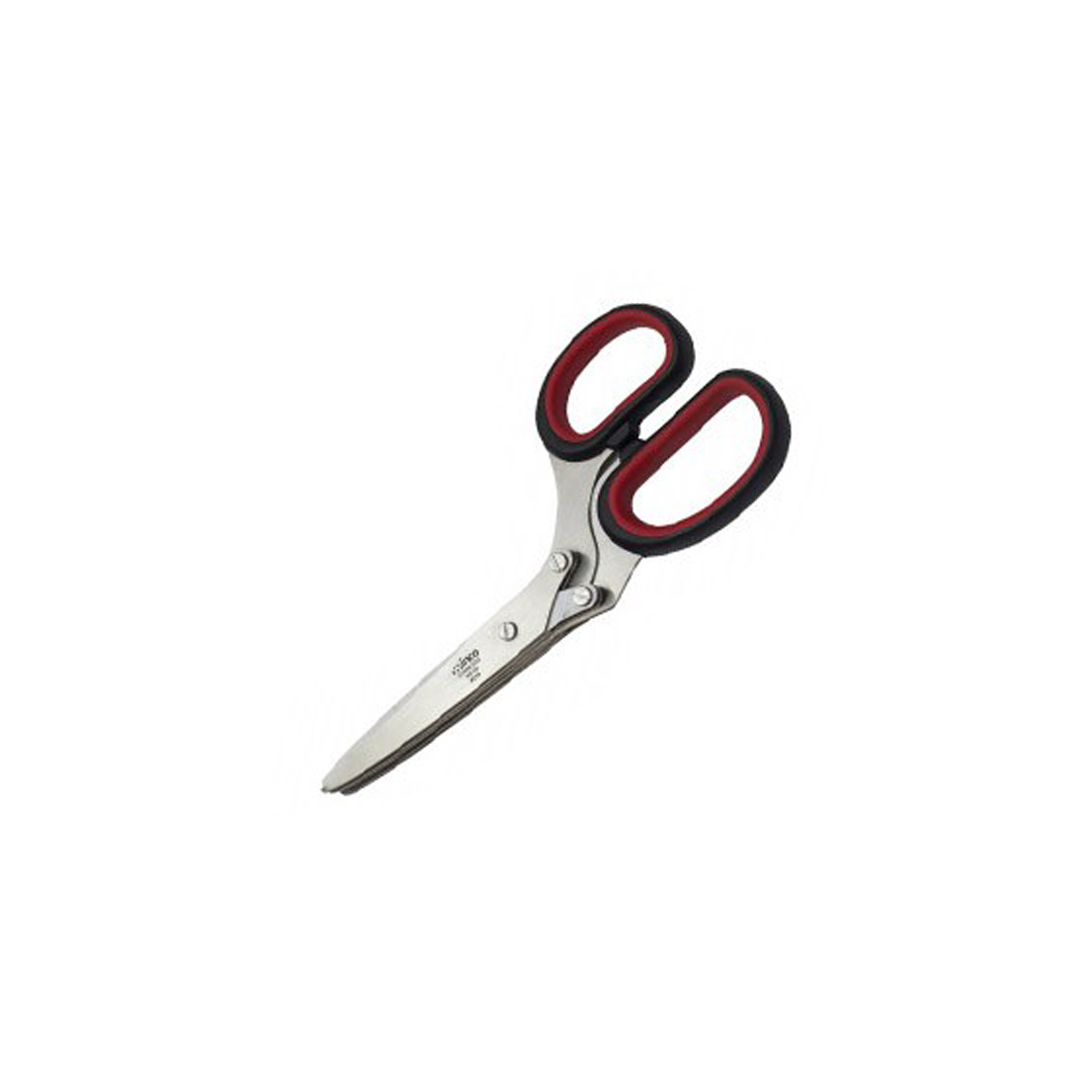 Этими ножницами легко и просто крошить зелень (петрушку, укроп, рукколу и др.), при этом не использовать нож и разделочную доску. Одно ваше движение приведет к пятикратному надрезу пучка зелени. Это происходит из-за своеобразной конструкции данного кухонного аксессуара: пять пар острых лезвий на расстоянии 1-2 мм с каждой стороны. Ножницы не требуют заточки. Материал: нержавеющая сталь. Пластиковая ручка. Подходит для мытья посудомоечной машины.