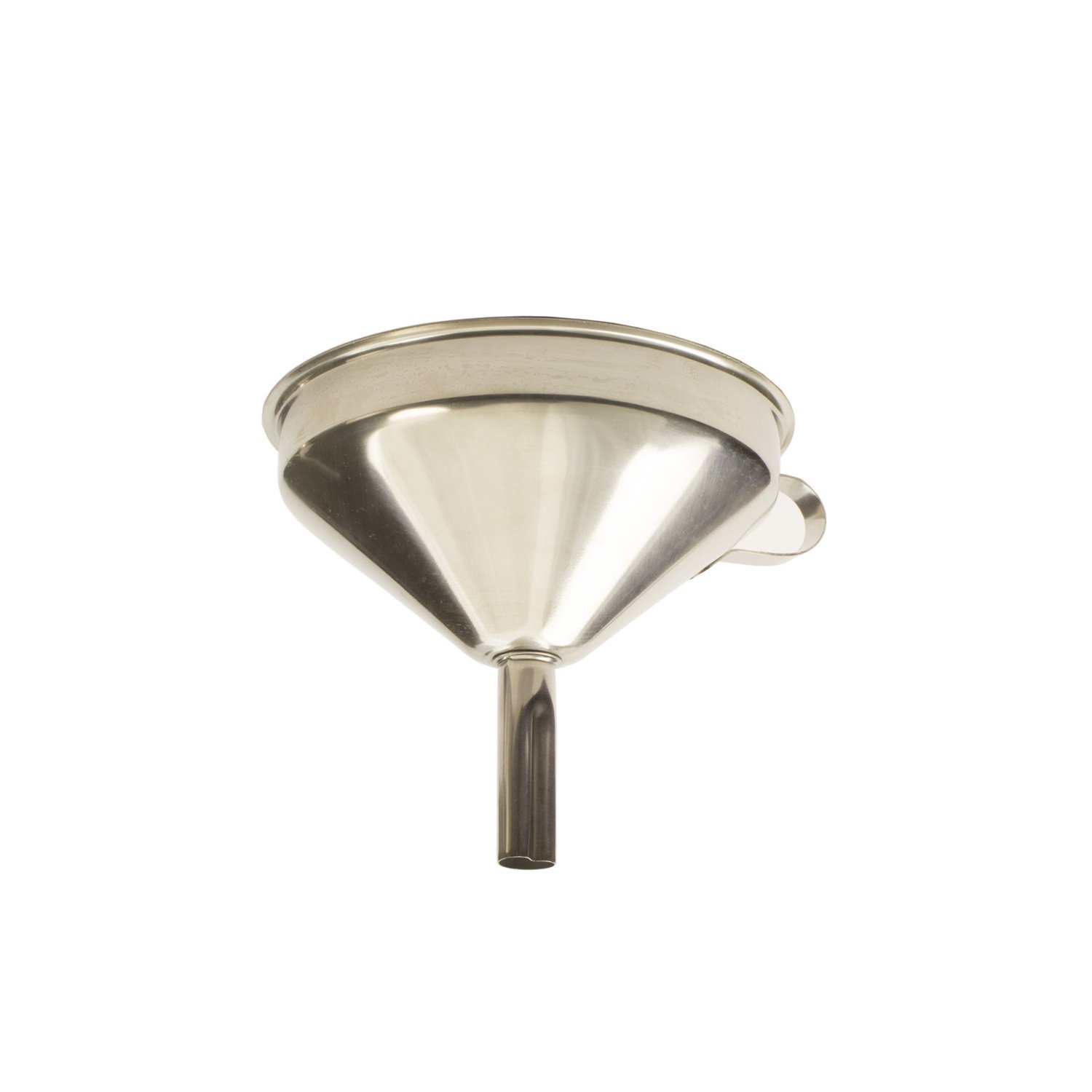 Диаметр: 14 см. Материал: нержавеющая сталь высокого качества. Металлическая лейка оснащена специальным фильтром в виде сеточки, позволяющей легко перелить жидкую субстанцию даже в самую узкую емкость, а также выполняет функцию процеживания от нежелательных предметов. Небольшая ручка сбоку лейки делает процесс ее эксплуатации намного комфортнее. Поверхность отполирована до зеркального блеска.