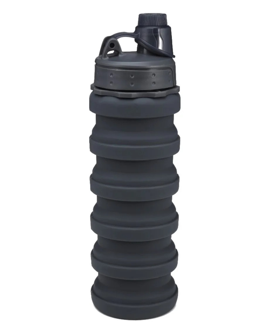 Складная силиконовая бутылка для воды и напитков с карабином water bottle 600 мл Черный (С051120)