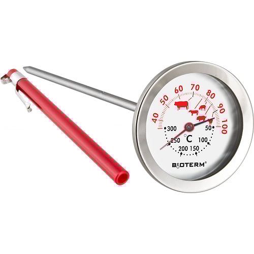 Термометр для духовки Browin 40... 300°С Термометр для запекания в духовке поможет Вам определять температуру внутри готовящегося продукта. Может оставаться внутри блюда для измерения температуры во время всего процесса приготовления. Шкала измерения в двух вариантах: +50°С до +300°С; +30°С до +100°С; Точность определения температуры: +/-2°C. Характеристики: Материал: игла из пищевой нержавеющей стали, корпус из стекла, чехол пластиковый Шкала измерения: от +50°С до +300°С; и 30°С до +100°С Точность определения температуры: +/-2°C Размеры: 5,2 x 14,8 См Цвет наружный: хромированный корпус, красная стрелка, красный чехол Комплектация: 1 термометр; 1 чехол для щупа Производитель: Browin, Польша Уход: после применения, протереть влажной салфеткой