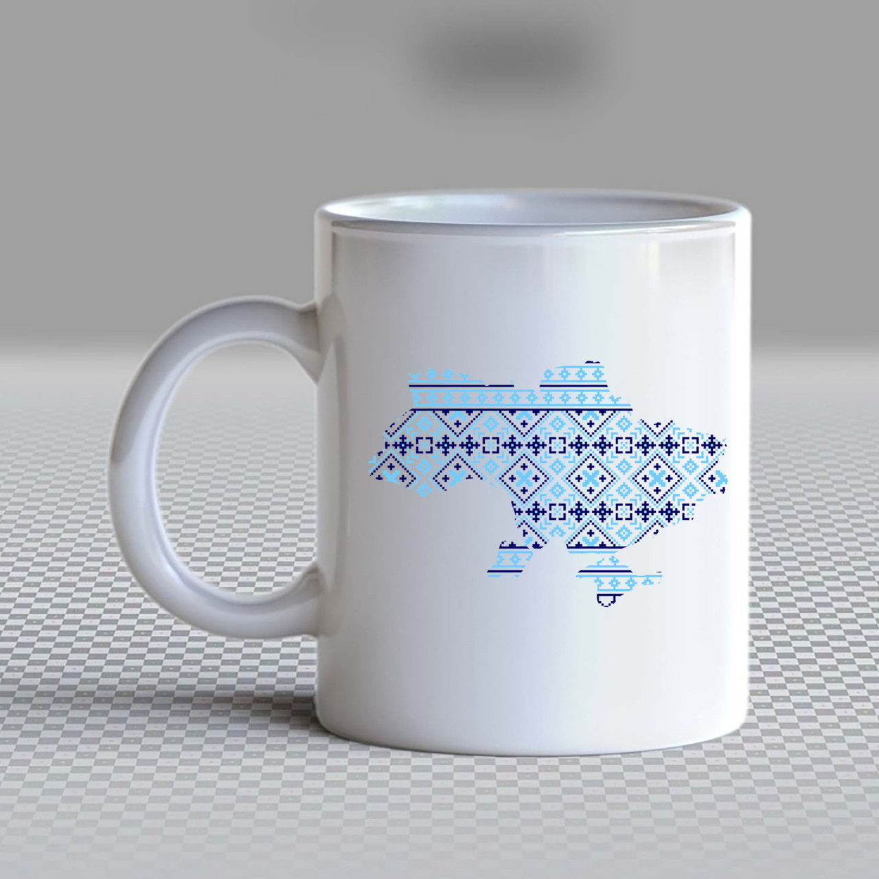 Кружка чашка белая с принтом "Карта Украины на фоне синего орнамента" Кавун