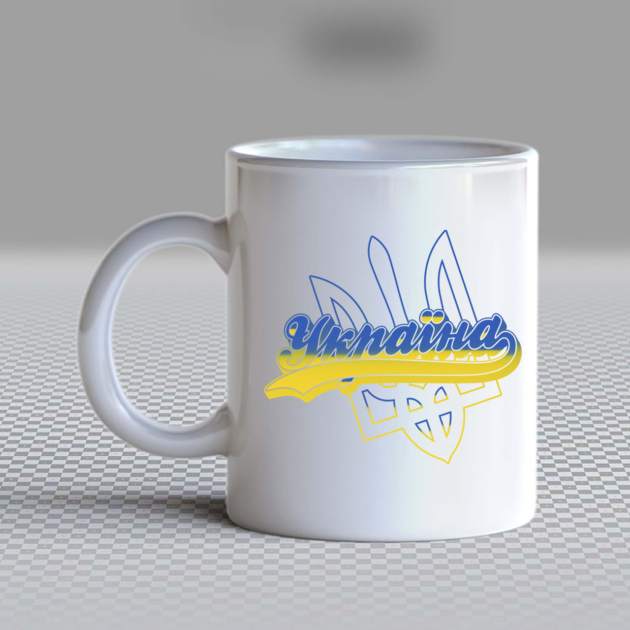 Кружка чашка белая с принтом "Надпись Украина и Герб" Кавун