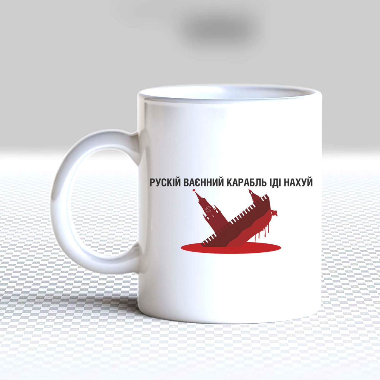 Кружка чашка белая с принтом "Русский военный корабель, иди нах*й" Кавун