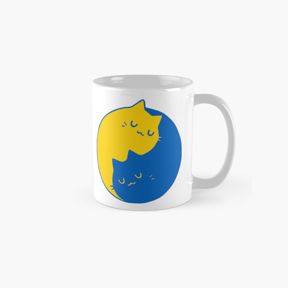 Кружка чашка белая с принтом "Украинские коты Инь и Ян синий и желтый 2" Кавун