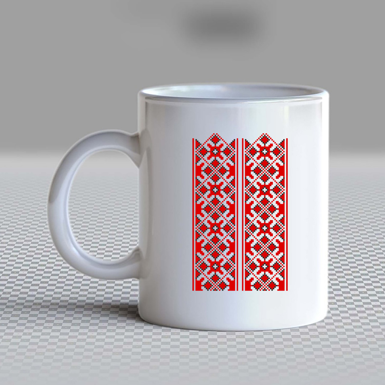 Кружка чашка белая с принтом "Цветочный орнамент красный вышиванки на груди" Кавун