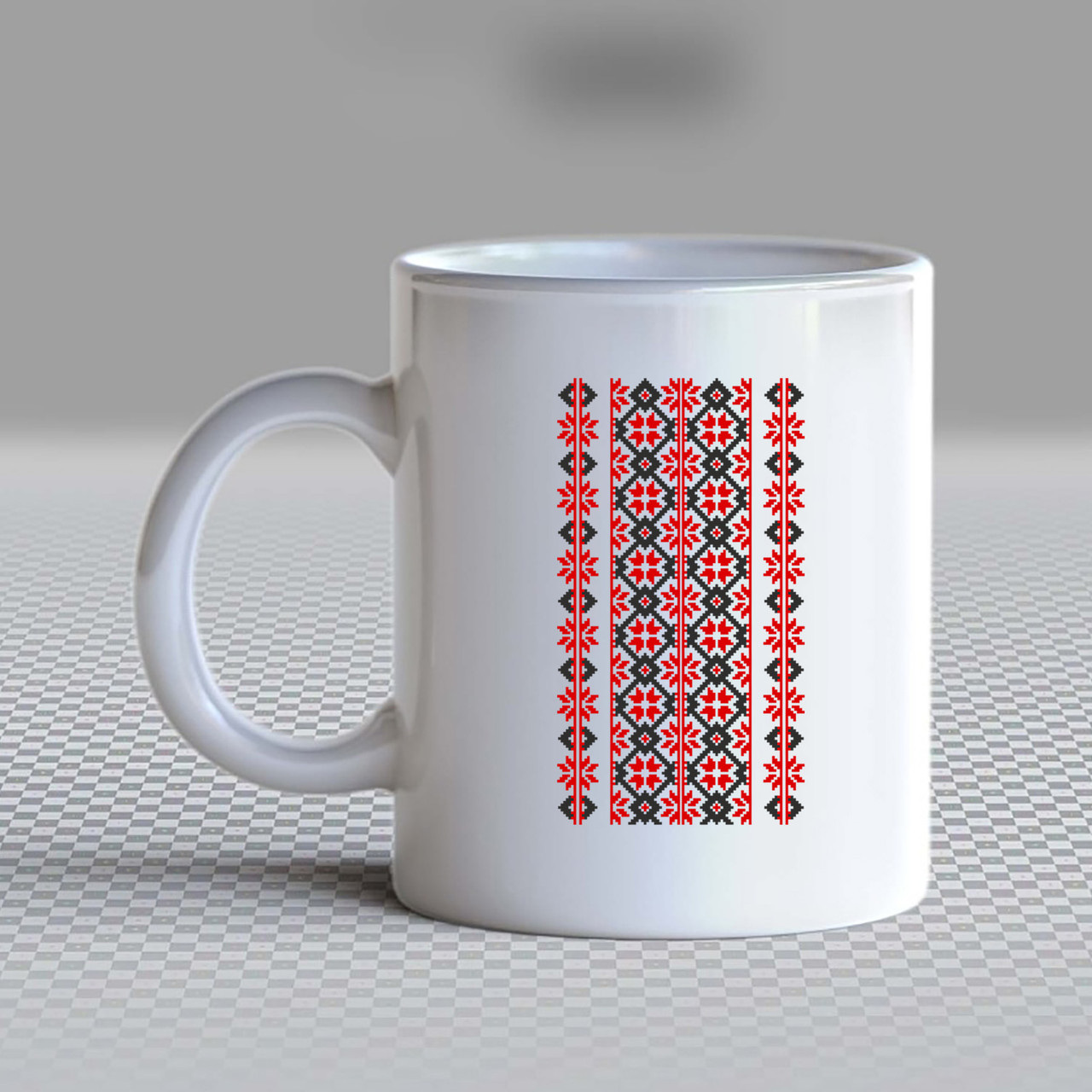 Кружка чашка белая с принтом "Цветочный орнамент красно-черный вышиванки на груди" Кавун