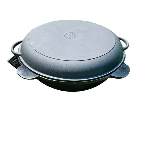 Казан узбекский чугунный 12 л с чугунной крышкой-сковородой и алюминиевой крышкой (наманганский) пр-во Узбекистан