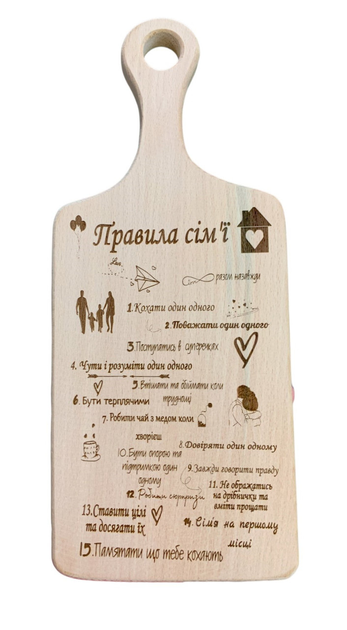 Характеристики товару Доска разделочная 4Profi Правила семьи 28*12 см