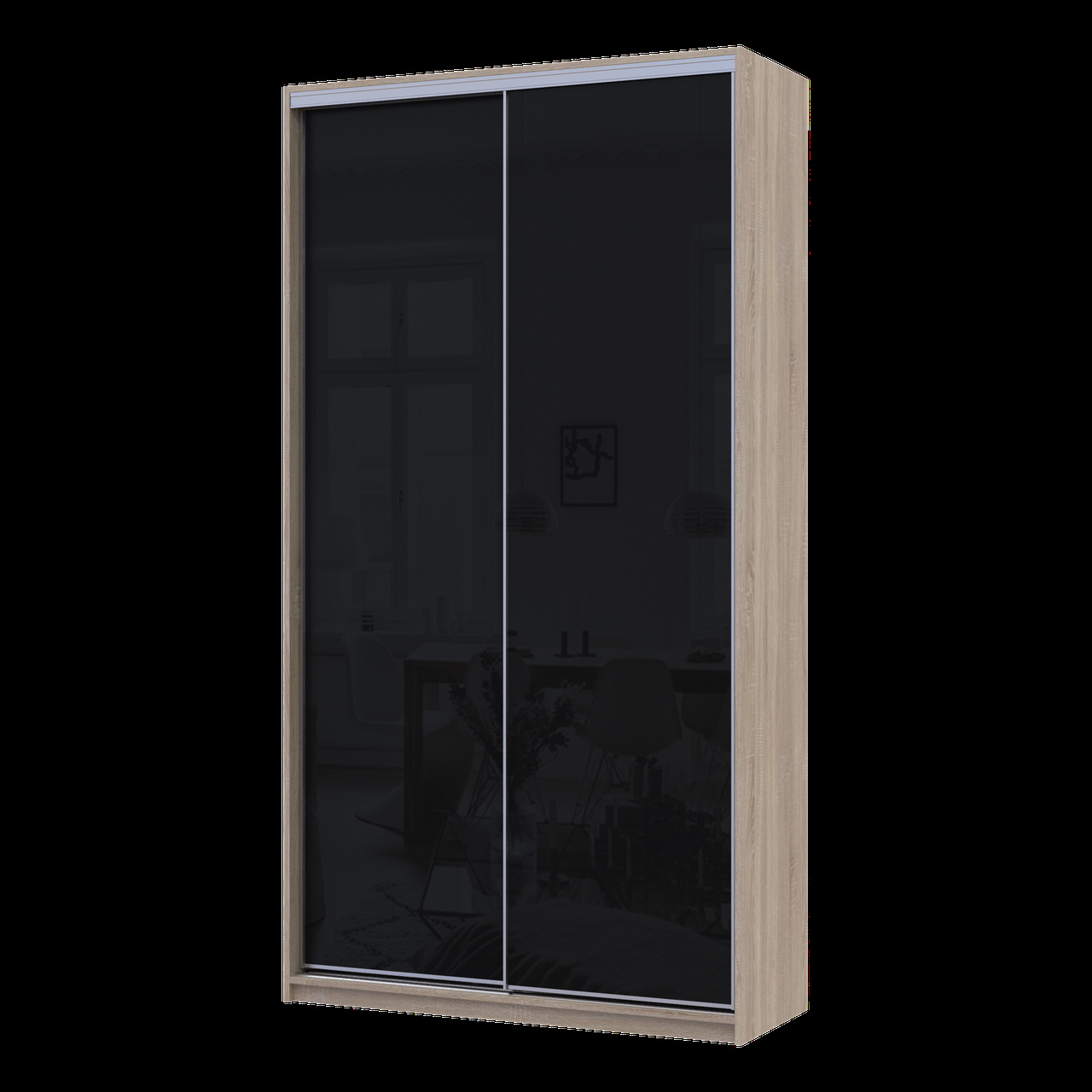 Характеристики товару Шафа купе Сіті Лайт Слім Дуб Сонома Скло Чорне 120х45х225 (44900310)