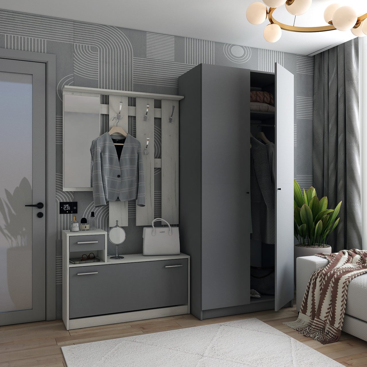 Передпокій Doros Alice та шафа Promo 2 ДСП Дуб Крафт Белый/Графит (44900292)