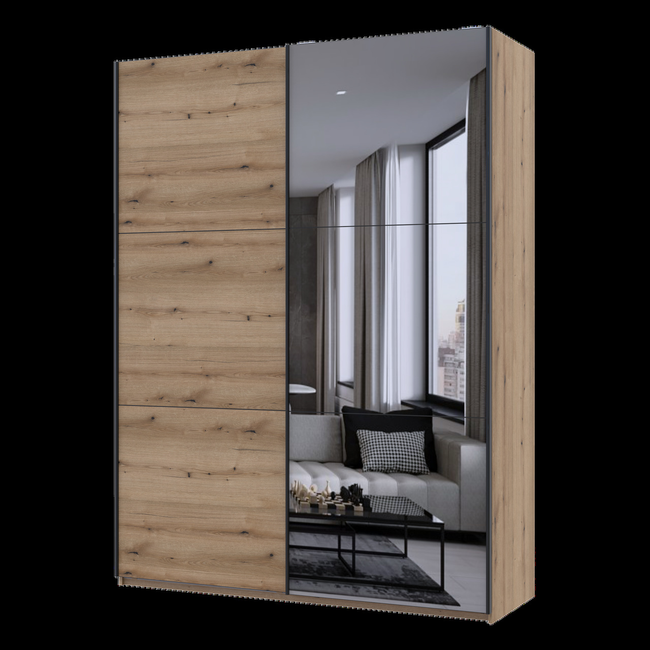 Шкаф купе Doros G-Caiser Графіт / Дуб Евок 1 ДСП / 1 дзеркало / 3 частини 180х60х240 (42005013)