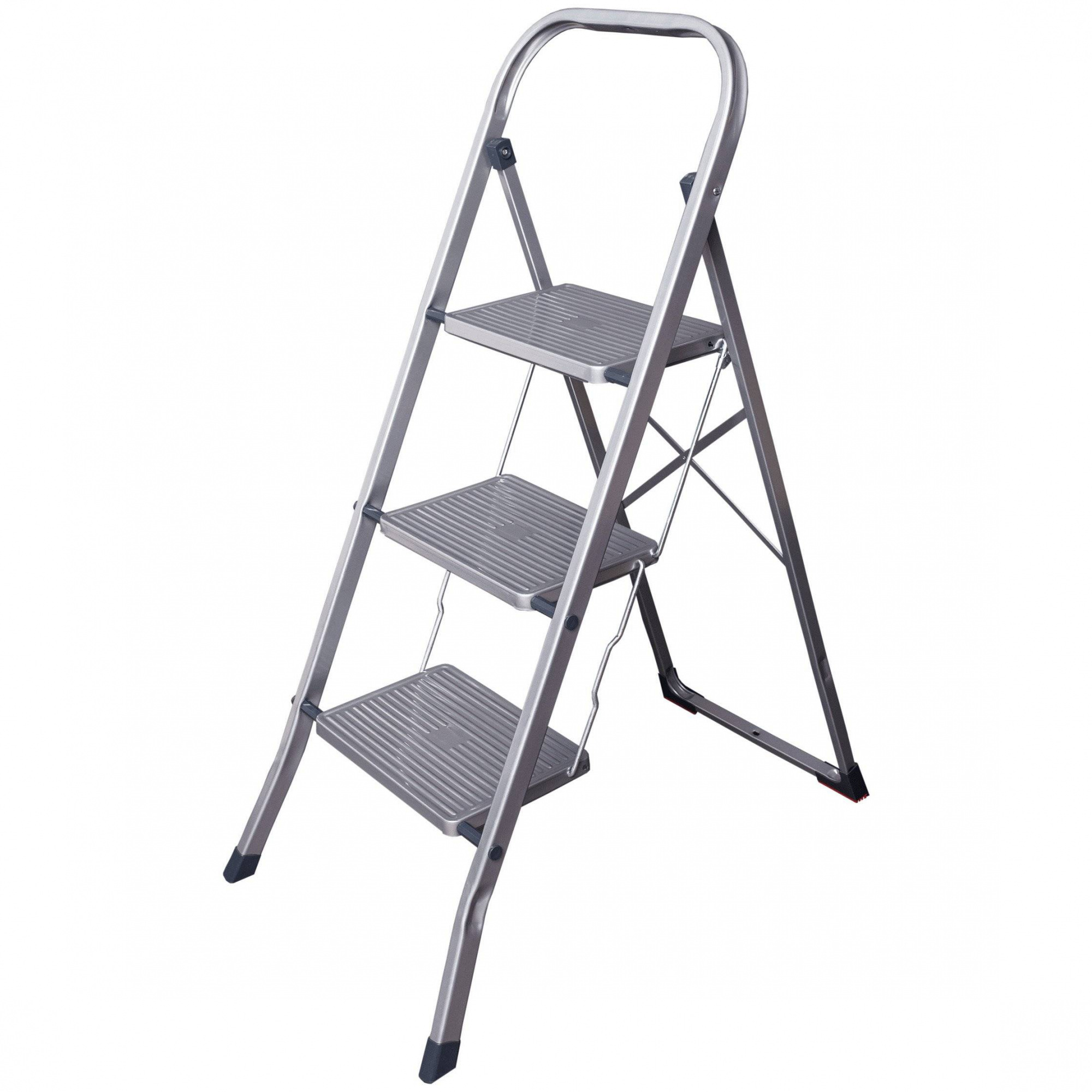 Драбина металева розкладна 3 сходинки Eurogold 2103 Побутова драбина — практична та зручна у користуванні. Ребриста поверхня її сходинок протидіє ковзанню стопи на їхній поверхні, а двокомпонентні захисні опори - ковзанню самої драбини по підлозі, забезпечуючи стійкість та стабільність положення. Захисне епоксидне покриття робить виріб більш зносостійким, а зручна система складання забезпечує компактність та легкість у зберіганні. Характеристика: Вид: Драбина Матеріал: Метал Вага: 5,07 кг Розмір у складеному стані: 116,5*47,5*6 см Максимальне навантаження: до 150 кг Кількість сходинок: 3 Висота в розкладеному стані: 104 см Розмір сходинки: 30*20 см Відстань між сходинками: 24 см