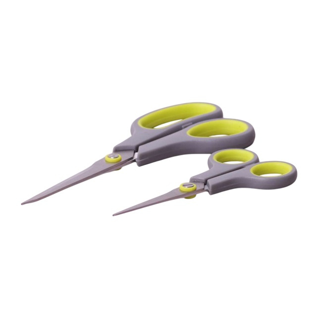 Ножиці універсальні Kamille виготовлені із якісних матеріалів з використанням сучасних технологій. Вони мають міцний механізм і оснащені спеціальними антиковзкими вставками на ручках, завдяки чому вони не ковзатимуть у руці. У застосуванні ножиці Kamille досить прості та зручні та неодмінно прослужать Вам дуже довгий час. Ножиці універсальні 2 предмети 14 см; 21.5 см з нержавіючої сталі із пластиковими ручками KM-518 Характеристики: Матеріал: нержавіюча сталь, пластик, TPR-вставки Загальна довжина: маленькі ножиці 14см, великі ножиці 24.5см Особливості : ексклюзивний дизайн зручні ергономічні ручки міцний механізм естетика та функціональність