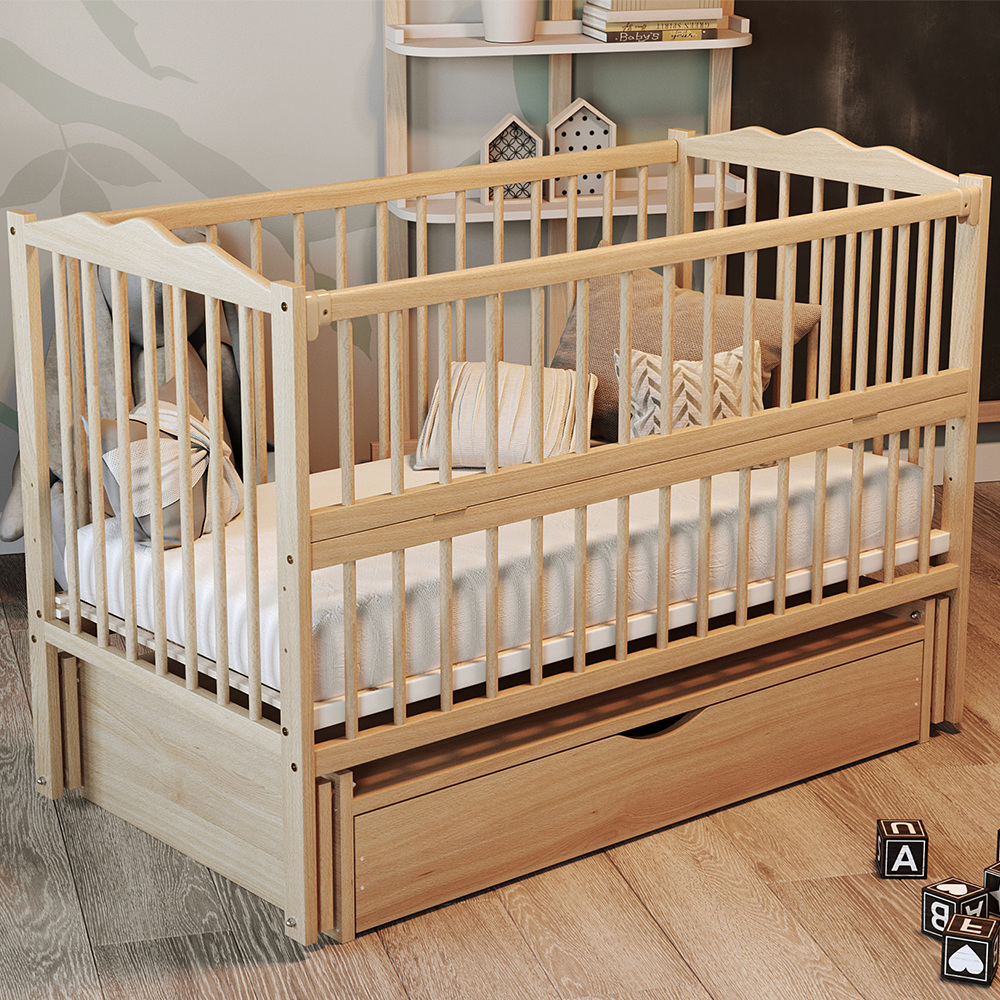 Дитяче ліжечко OSKAR бук натуральний лак, 1 шухляда
