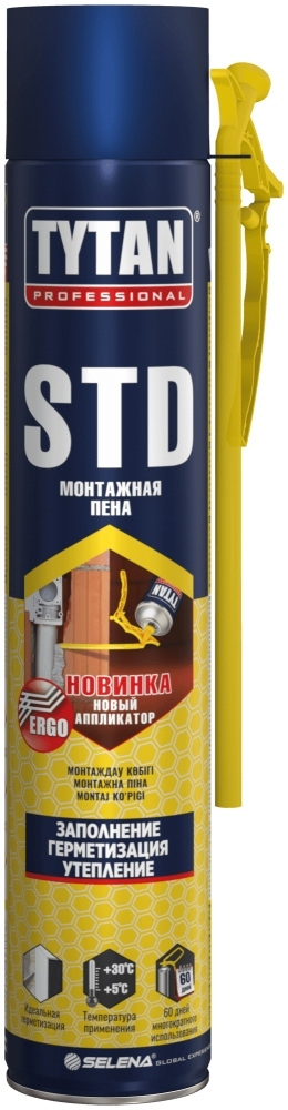 Пена монтажная TYTAN STD ERGO предназначеня для монтажа окон и дверей; термо и звукоизоляция; заполнения и герметизации.