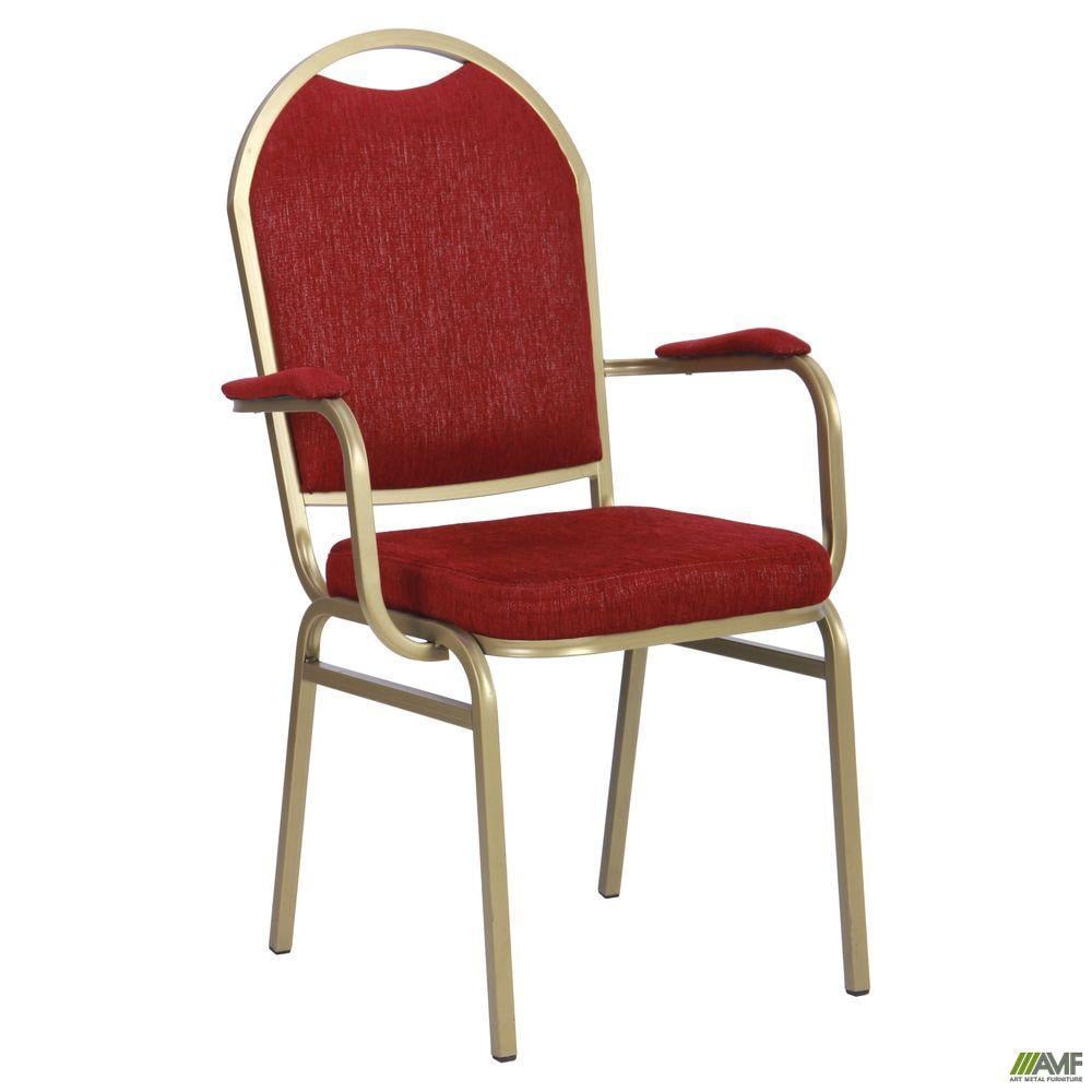 Стілець Банкетний Преміум із підлокітниками на ніжках золото сидіння м'яке червоне