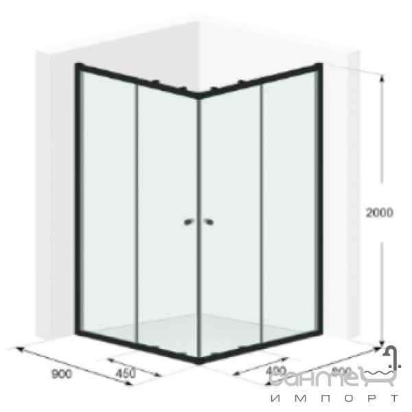 Душевая кабина Liberta Rimini 400x600x700x2000 матовый черный/прозрачное стекло, ручка круглый кноб