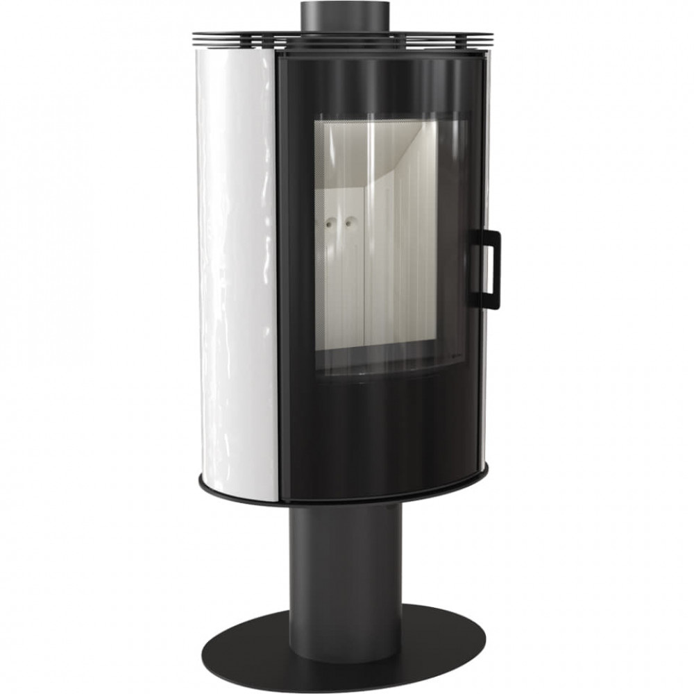 Печь-камин на дровах Kratki KOZA AB S/N/O/DR GLASS 8 кВт черный кафель, сталь, напольный (Ø150)