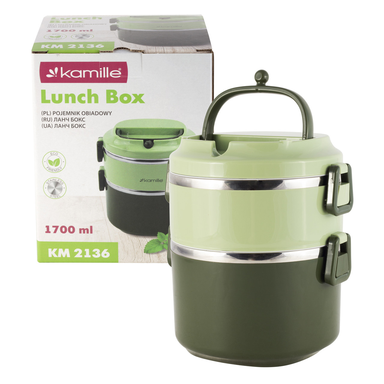 Эргономичный и компактный контейнер двойной green 1700мл KL226258 Kamille