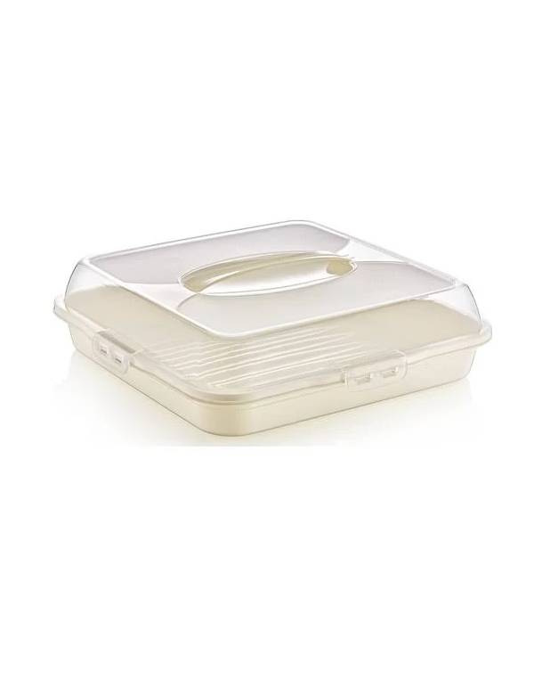 Тортівниця 35 х 35 х 10 см квадратна кремова Dunya Plastik 30308