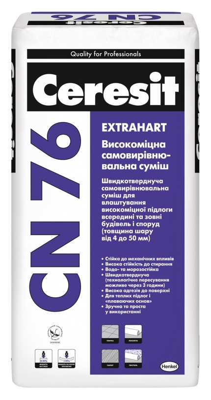 Характеристики товару Высокопрочное покрытие для пола CERESIT CN 76 25 кг