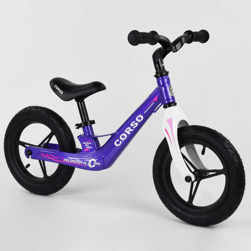 Велобег детский с надувными колёсами, магниевой рамой и магниевым рулем Corso Purple/White (22709)
